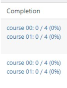 This gives a quick overview of individual user progress across all completable content.